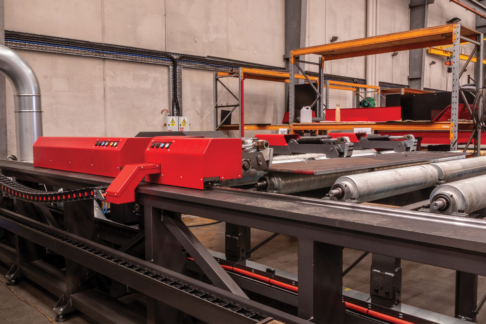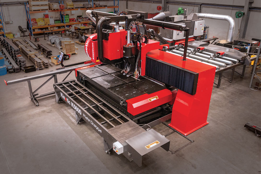 The K5600xmc plasma cutting system combines all of the features and specifications of our innovative K5000 system but with the addition of our “Plate Dragga” pass-through table technology. This means that instead of a traditional moving gantry, the material is pulled through a stationary gantry for cutting, drilling, marking and more.