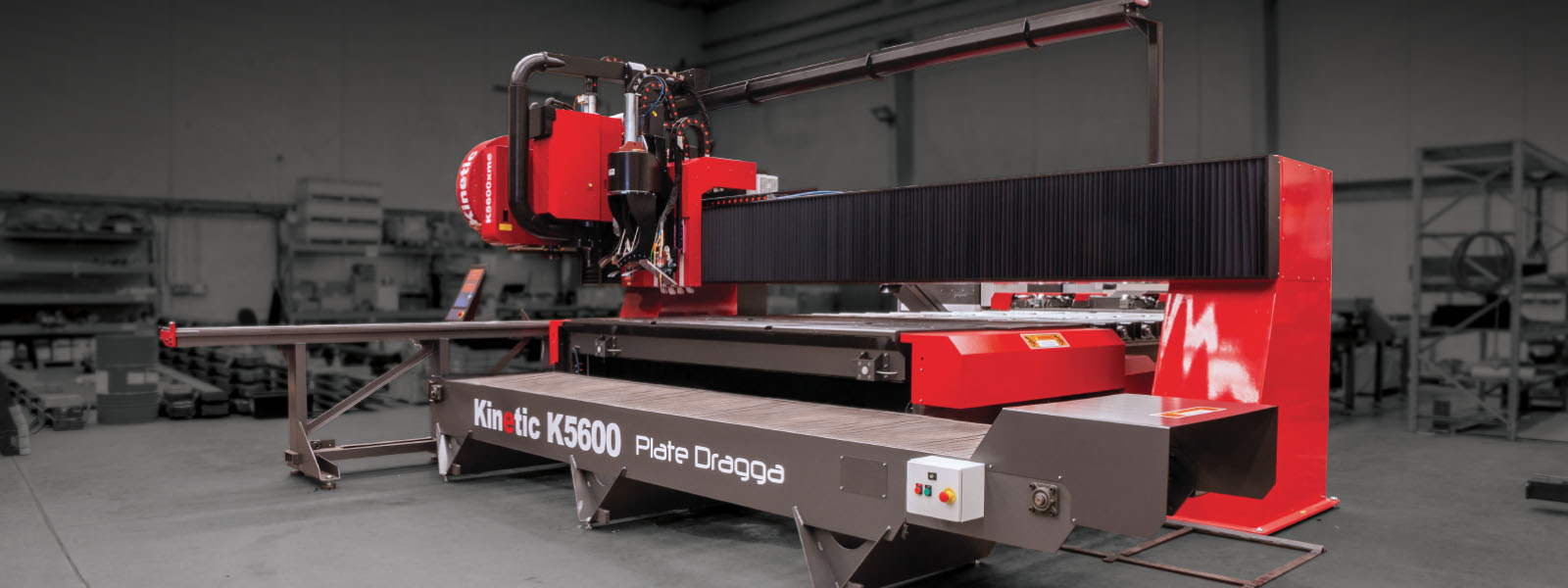 The K5600xmc plasma cutting system combines all of the features and specifications of our innovative K5000 system but with the addition of our “Plate Dragga” pass-through table technology. This means that instead of a traditional moving gantry, the material is pulled through a stationary gantry for cutting, drilling, marking and more.